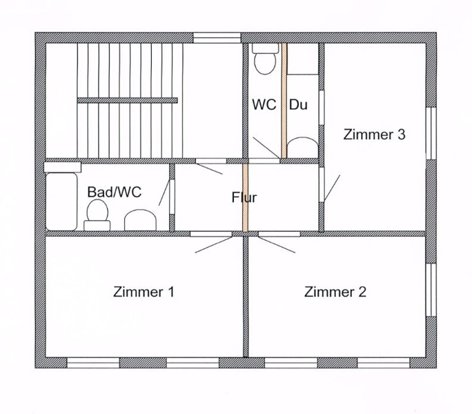 | Obergeschoss | Diele, WC, Dusche, Badezimmer, 3 Räume. |