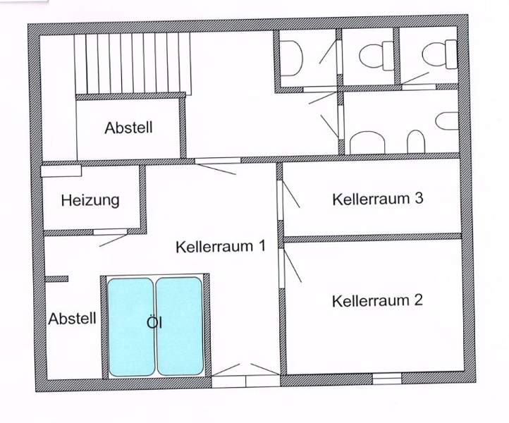 | Keller | 3 Räume, Heizraum, Toiletten für Gastraum. |